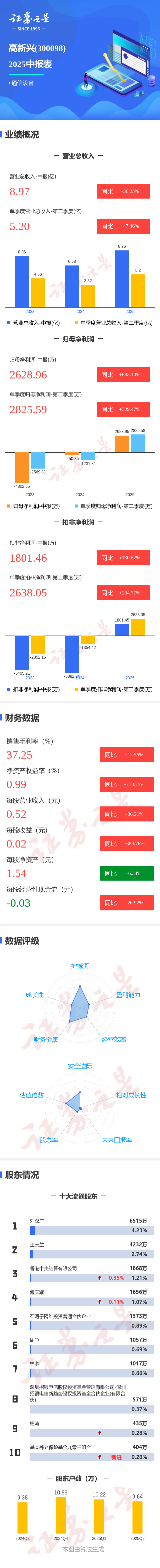 图解高新兴中报: 第二季度单季净利润同比增长329.48%